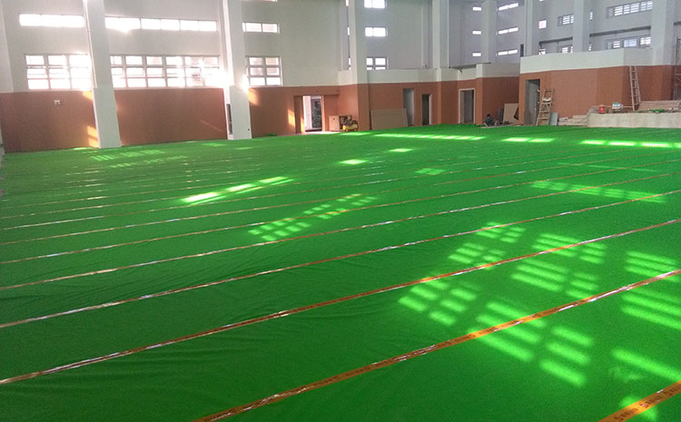 (5)用拋光機對體育木地板遏制片拋光,而且用吸塵器干凈地板。