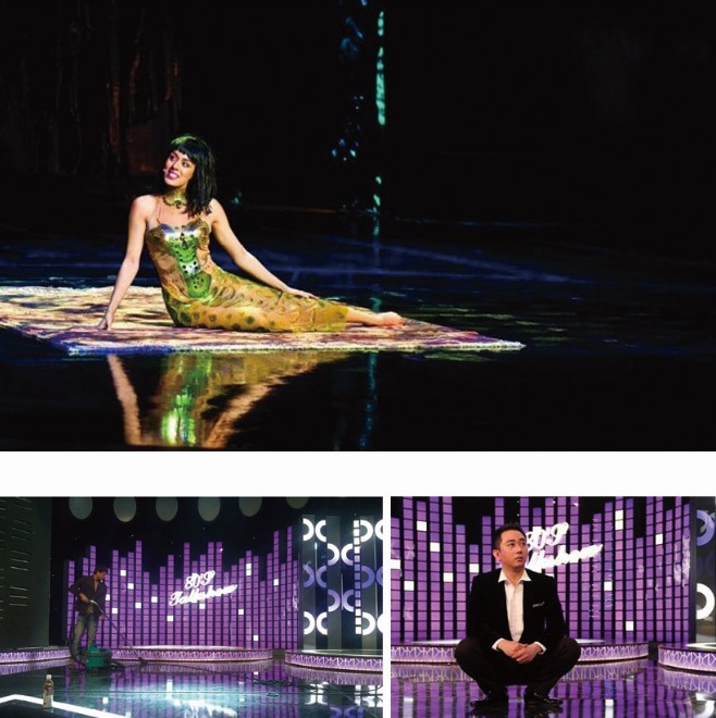 舞臺亮面地膠主要應用于舞臺演出、演播室及T臺地面,面層采用微米糊狀樹脂,經反光及UV處理。燈光打上去之后產生鏡面反光效果,舞臺背景及演員會倒映在舞臺地膠上面,使舞臺絢麗奪目。表面具有一定的防滑性能,底層整體由無發(fā)泡的PVC構成,可承受笨重的道具和設備等,根據舞臺的需要可進行固定式或移動式安裝。平米適量可根據您所需要的顏色生產。