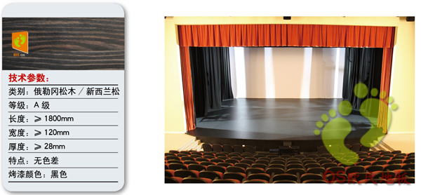 劇院舞臺是演員表演的中心區(qū)域,這里的地板要求必須滿足堅硬、耐磨、具有彈性和防止伸縮不平等要求。舞臺地板一般都采用實木地板、比較好的是美國進口俄勒岡松、我國東北紅松等材料制成。